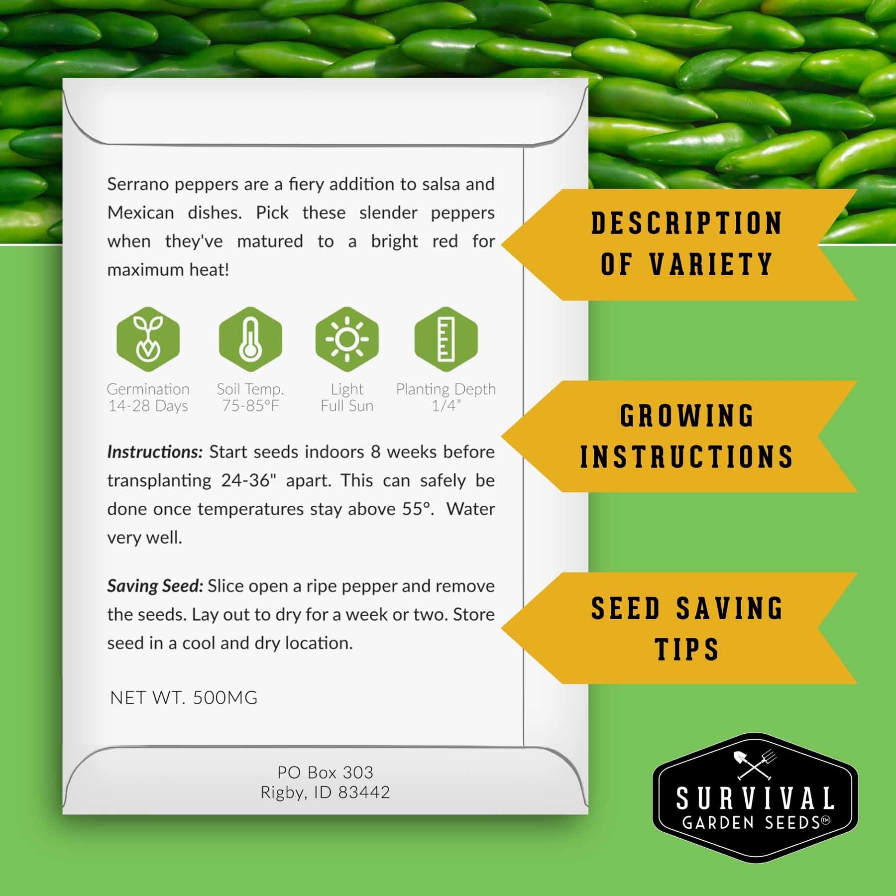 Grow a flavorful, high-performing pepper garden with the 10 Variety Pepper Seed Collection from Survival Garden Seeds. This curated assortment includes non-GMO, open-pollinated heirloom peppers selected for reliable germination, garden adaptability, and a full spectrum of culinary uses. From crisp, colorful bells to bold, spicy chilies, this compact collection gives both new growers and experienced gardeners a diverse set of peppers that thrive in containers, raised beds, and traditional garden spaces.