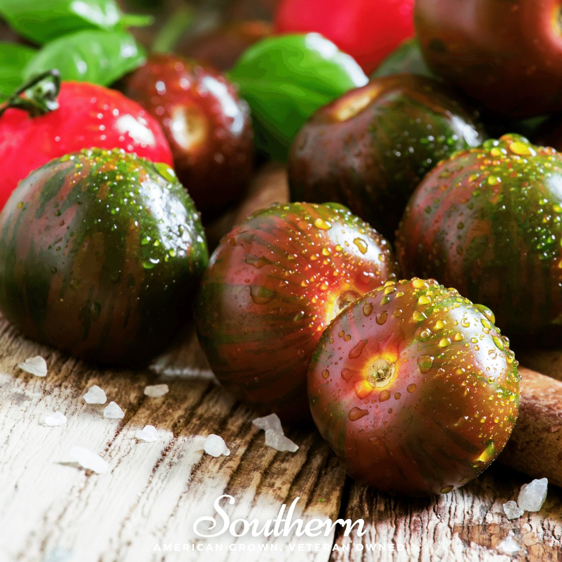 Want one of the best tasting tomatoes that matures in just 2 months and yields 24 to 40 pounds of tomatoes over a 3 month window? This Siberian native is the one for you. Consistently ranking among the top tasting tomatoes in national taste tests, the sweet and low acidic taste is our absolute favorite for Caprese salads. These 5 ounce tomatoes (medium sized) have very dark red fruit and dark red to brown flesh.
