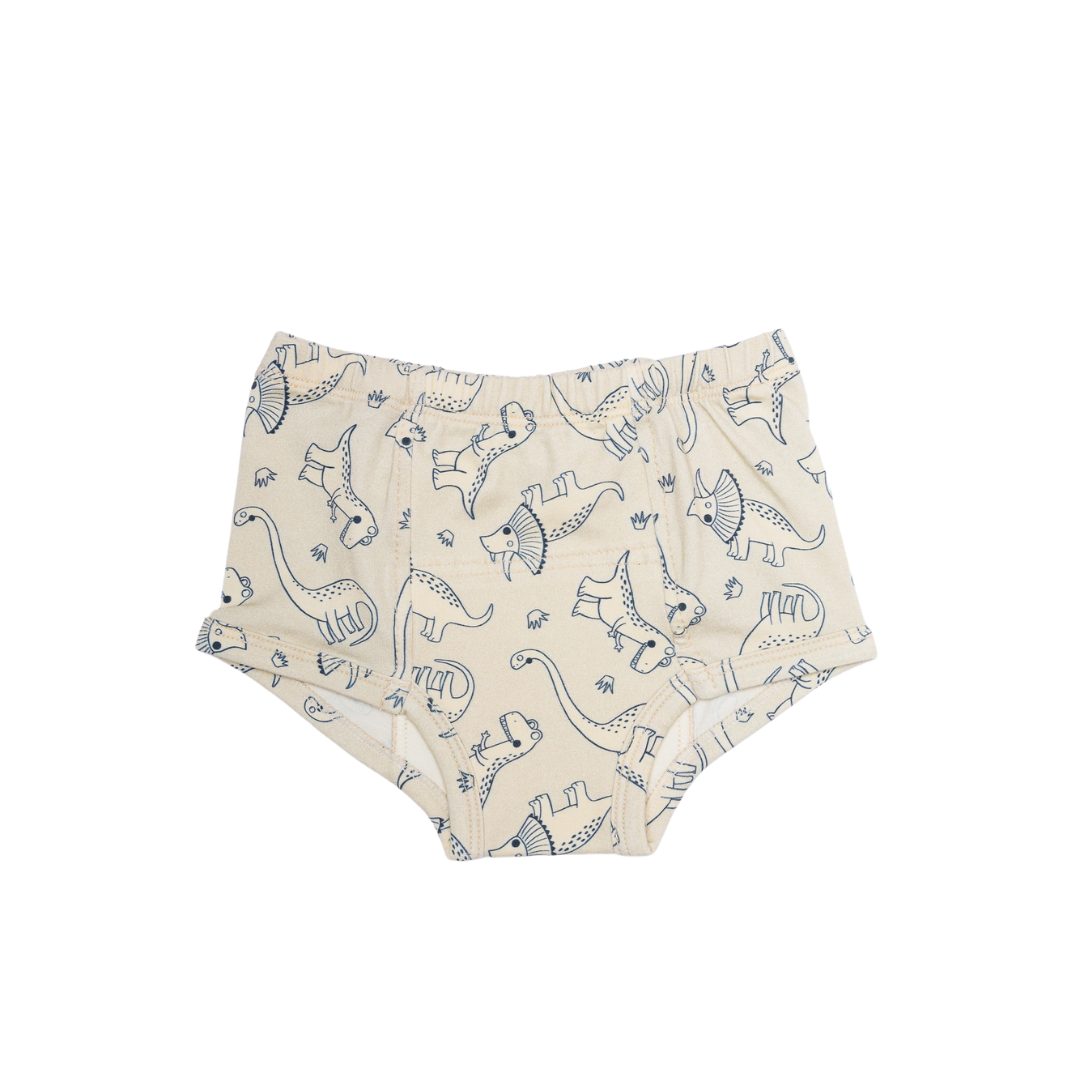 Our training pants are designed with three layers of organic cotton to support minor accidents while allowing your child to feel wet for effective dinosaur potty training. The three layers of organic cotton provide exceptional absorbency without adding bulk, so your little one can confidently wear them like regular underwear after finishing potty training.