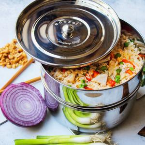 Steamer Lid – precisely perforated for vegetables, dumplings, and fish.