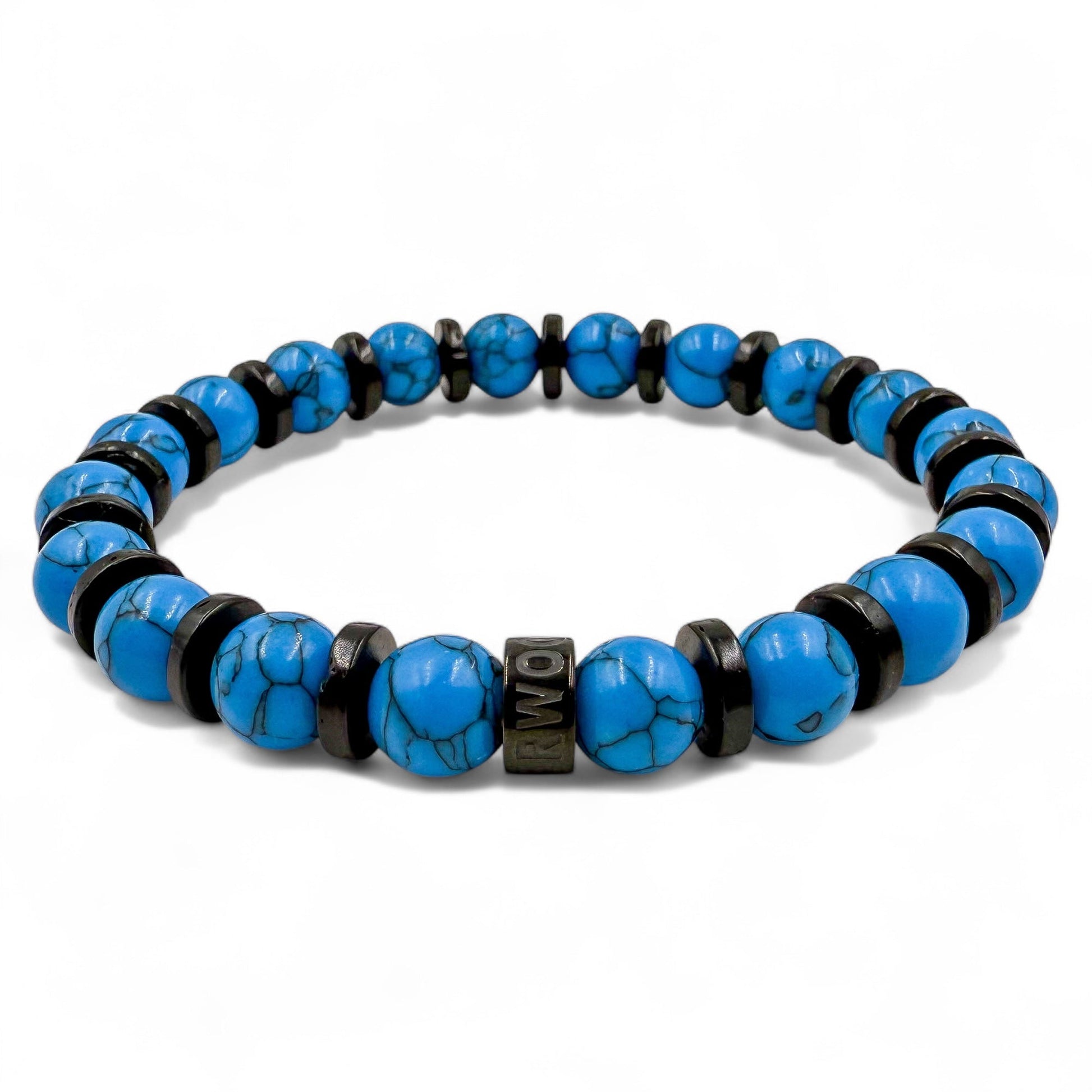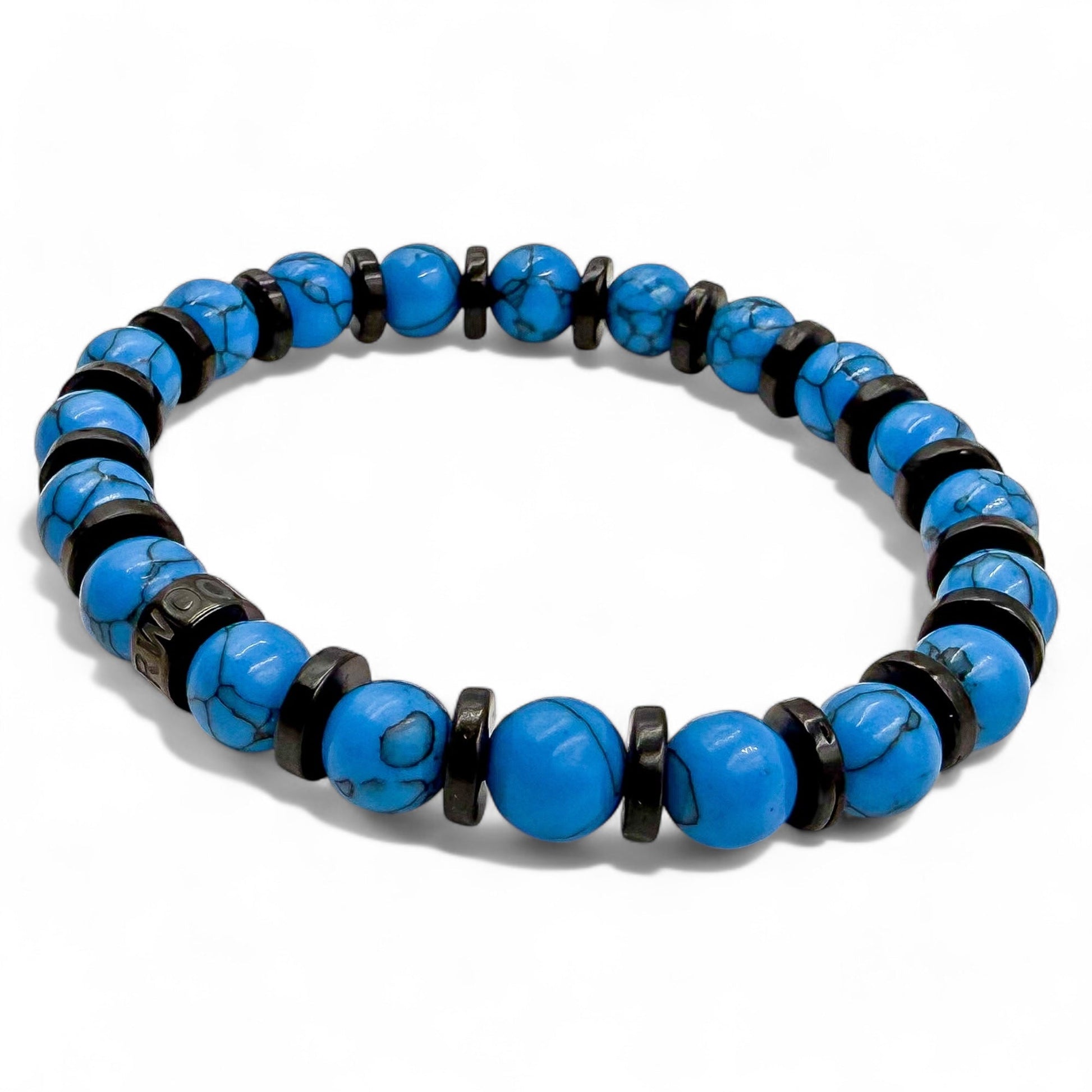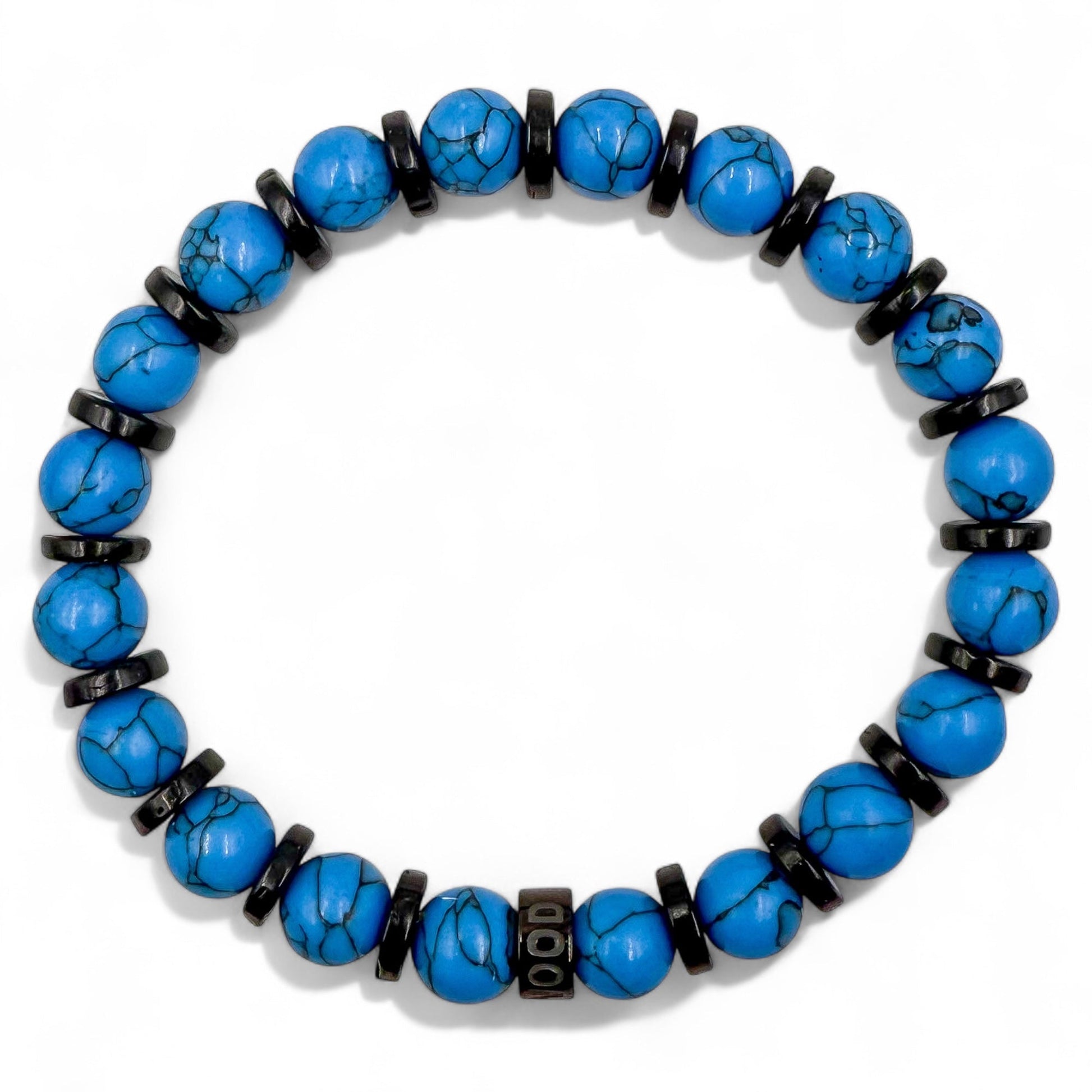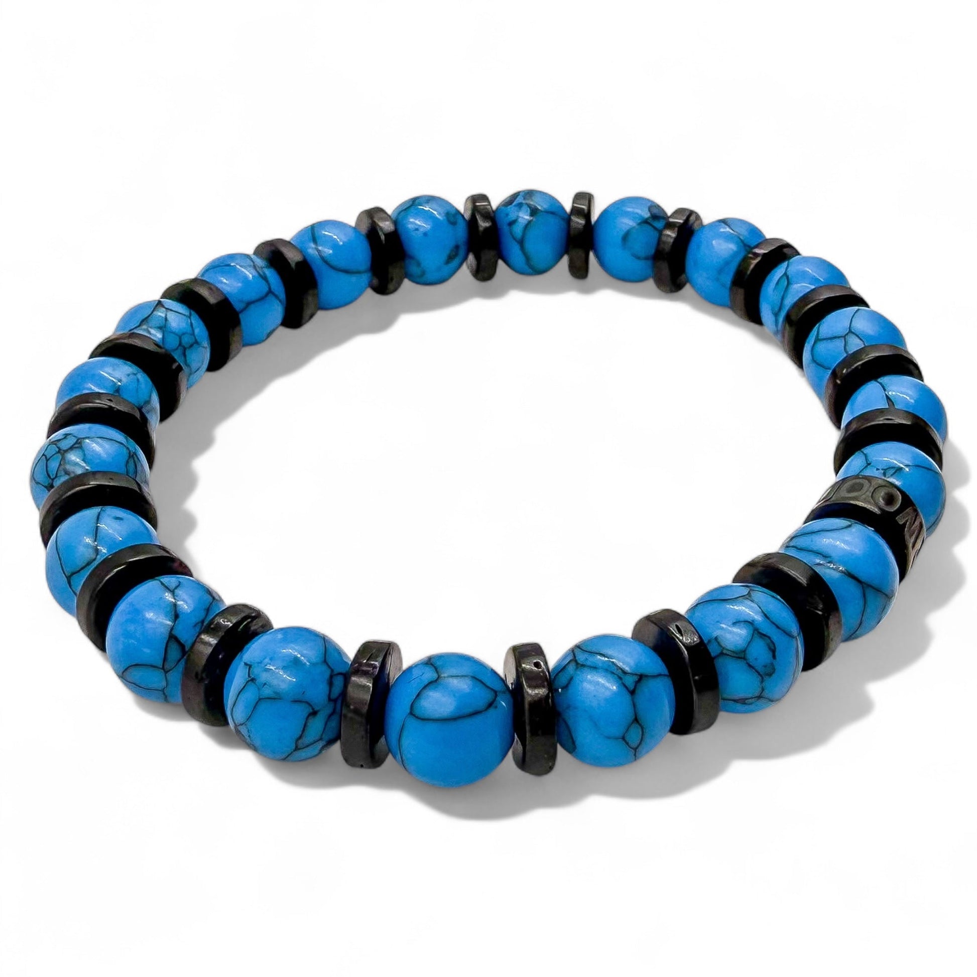 • Premium 8mm Blue Howlite and Blackwood Beads: Carefully selected for their distinctive texture and durability.