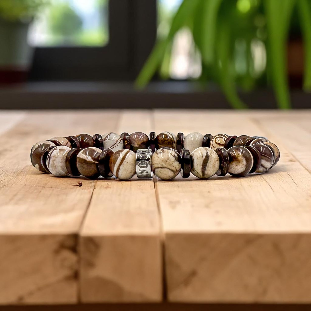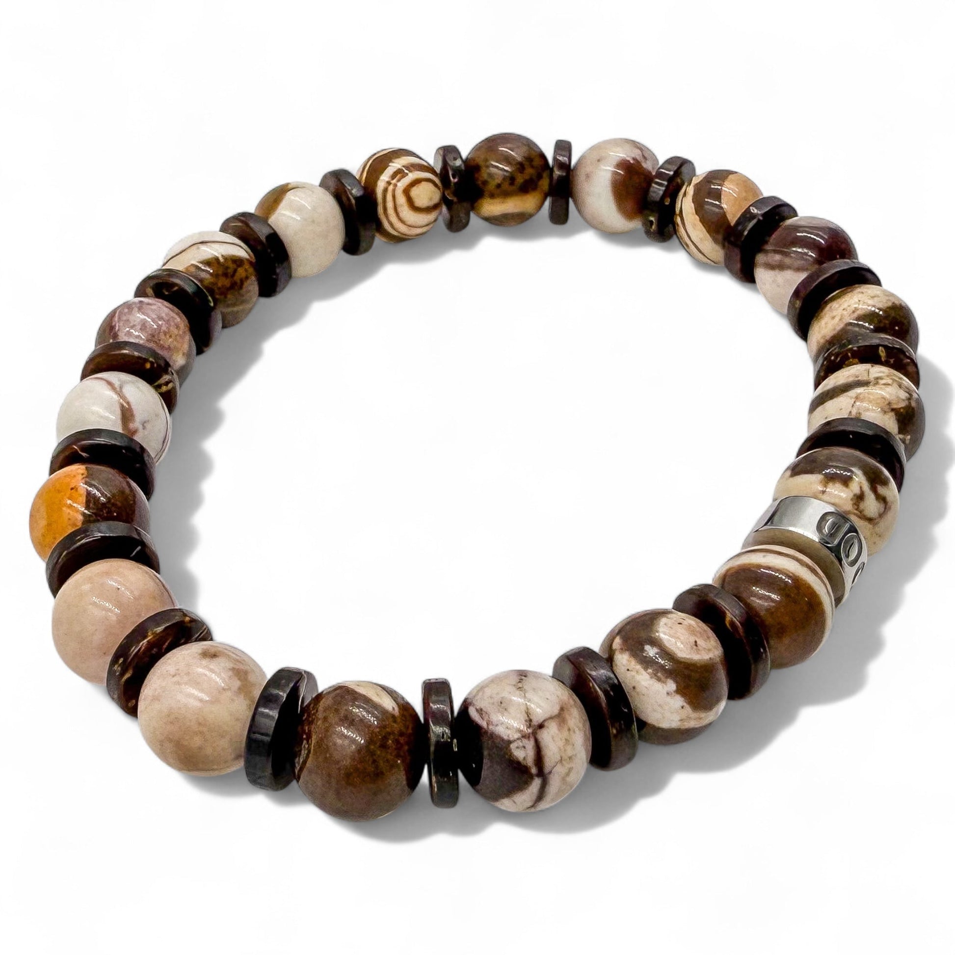 - Premium 8mm Brown Australian Jasper and Brown Coconut Beads: Naturally formed and carefully selected for their distinctive texture and durability.