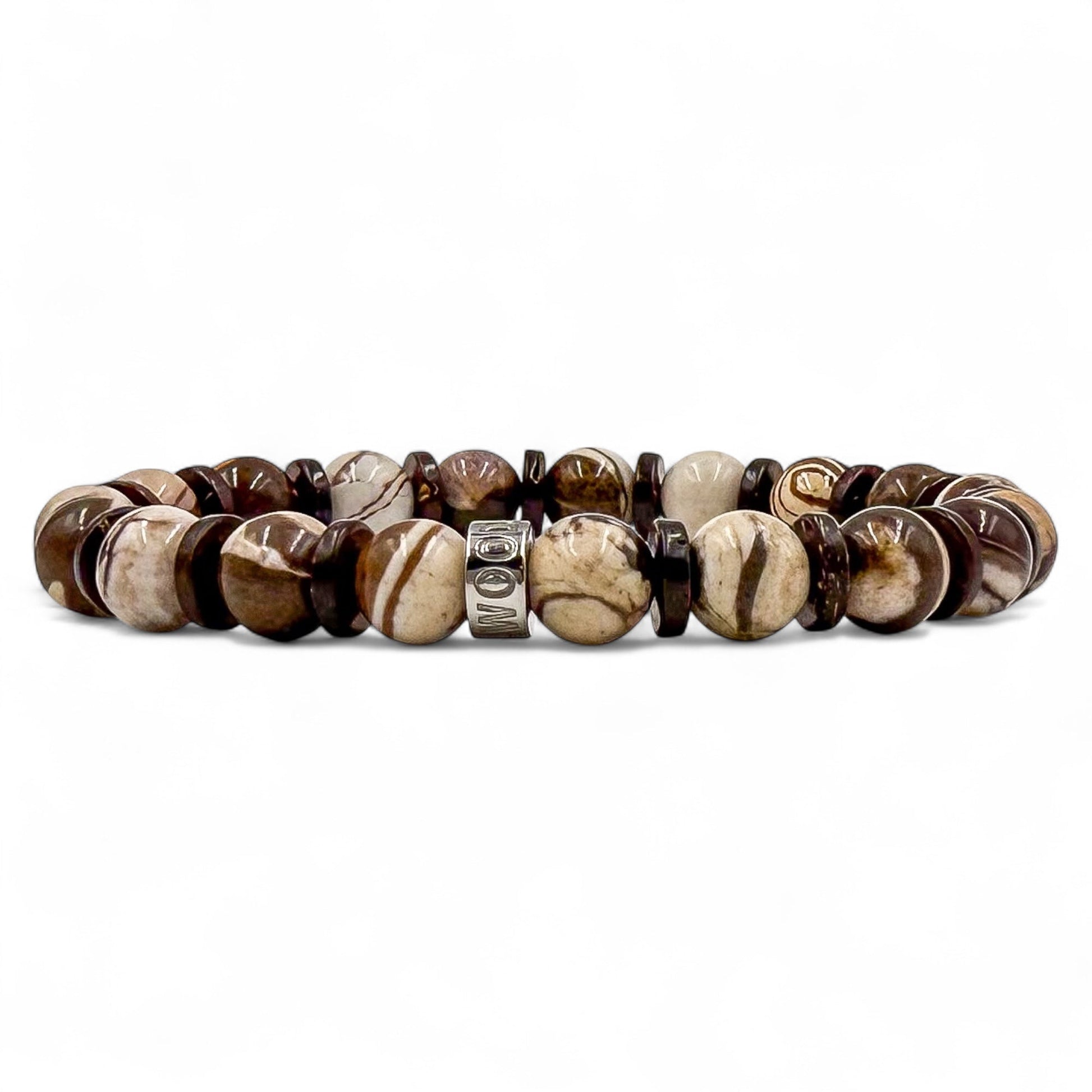 Balanced like the Force, grounded like a desert wanderer. The Kenobi Code bracelet features warm, rugged brown Australian jasper paired with natural brown coconut wood beads—bringing together the spirit of resilience and calm wisdom. Each bead is unique, just like the path of the one who wears it. Finished with a polished stainless steel spacer engraved with the EVERWOOD name, this piece is a quiet tribute to strength, purpose, and style without flash. Whether you’re deep in the grind or off in your own galaxy, Kenobi Code keeps your look centered and sharp.