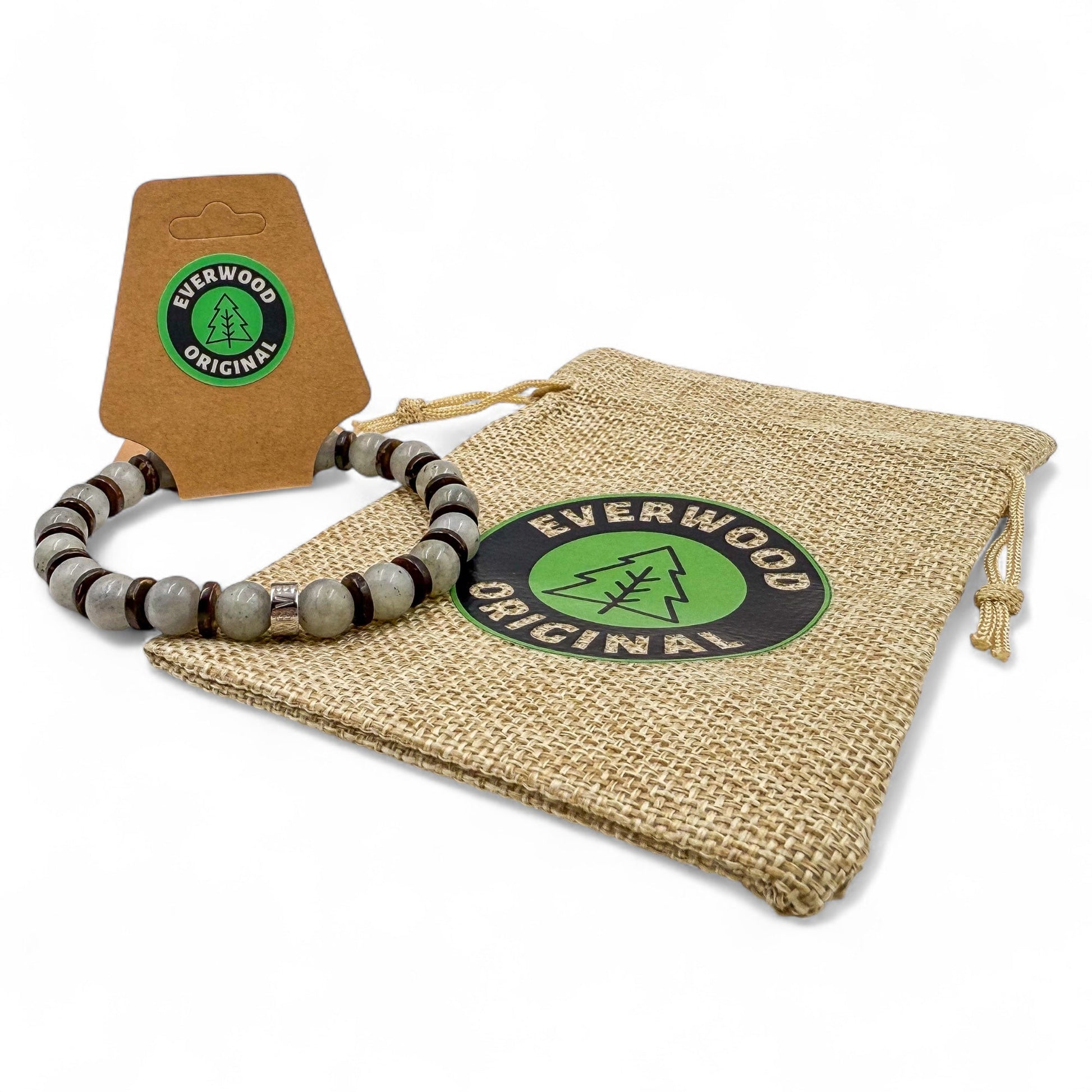 Wander with purpose. The Lunar Nomad bracelet channels cosmic energy and earthy roots with its striking mix of labradorite and rich brown coconut wood beads. Shifting shades of grey and blue flash from each labradorite bead, giving off a subtle glow that feels both grounded and otherworldly. Finished with a polished silver stainless steel spacer, engraved with the EVERWOOD name, this piece stands out without shouting. Whether you’re chasing horizons or chasing goals, Lunar Nomad is made for the journey.