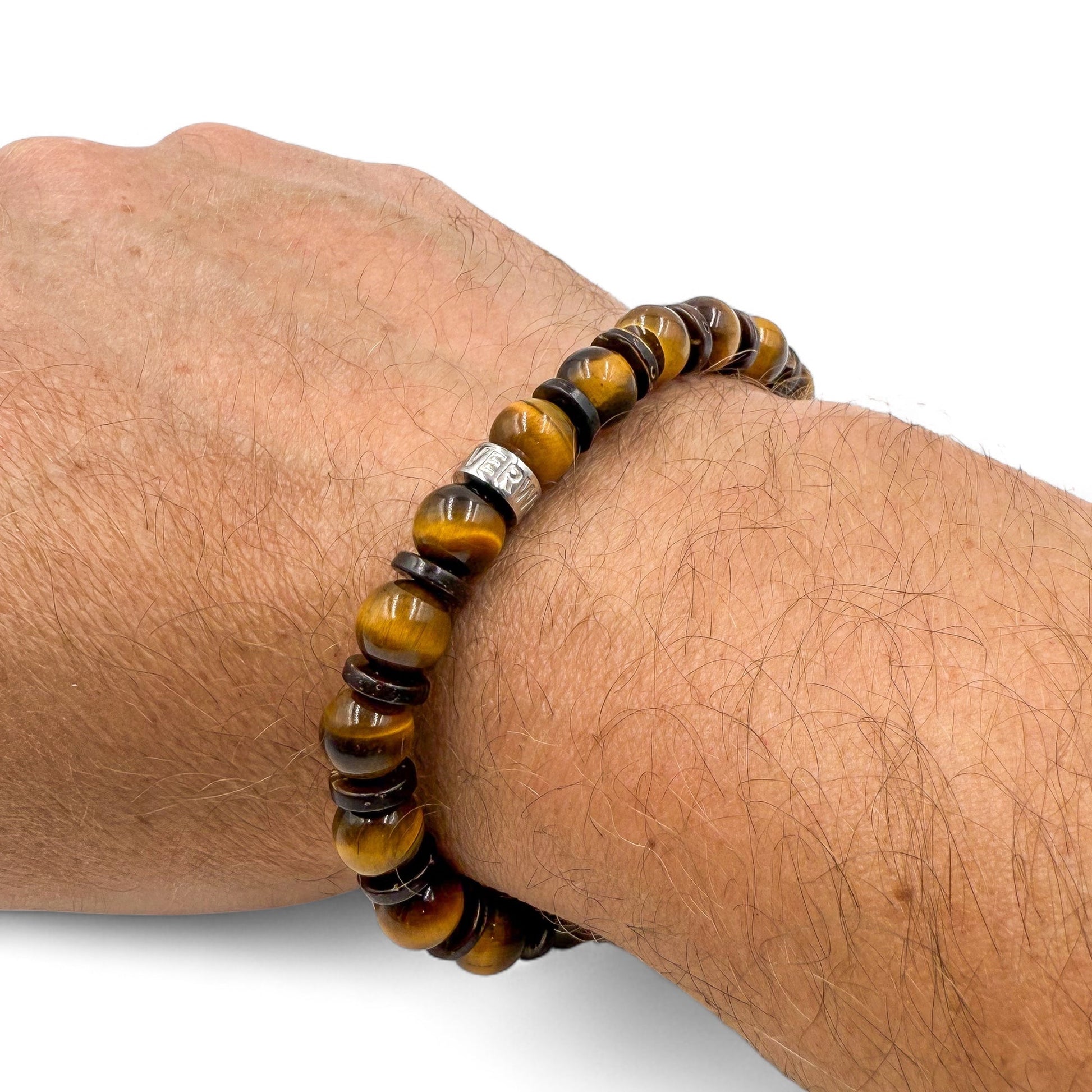 Power in every detail. The Tiger Shadow bracelet strikes the perfect balance between raw energy and natural calm. Featuring golden-brown tiger’s eye beads that flash with light and movement, paired with warm brown coconut wood for an earthy contrast, this piece brings a quiet intensity to your wrist. Finished with a polished stainless steel spacer engraved with the EVERWOOD name, it’s a bracelet built for strength, focus, and style. Whether you’re on the hunt or just keeping it cool, Tiger Shadow keeps you sharp.