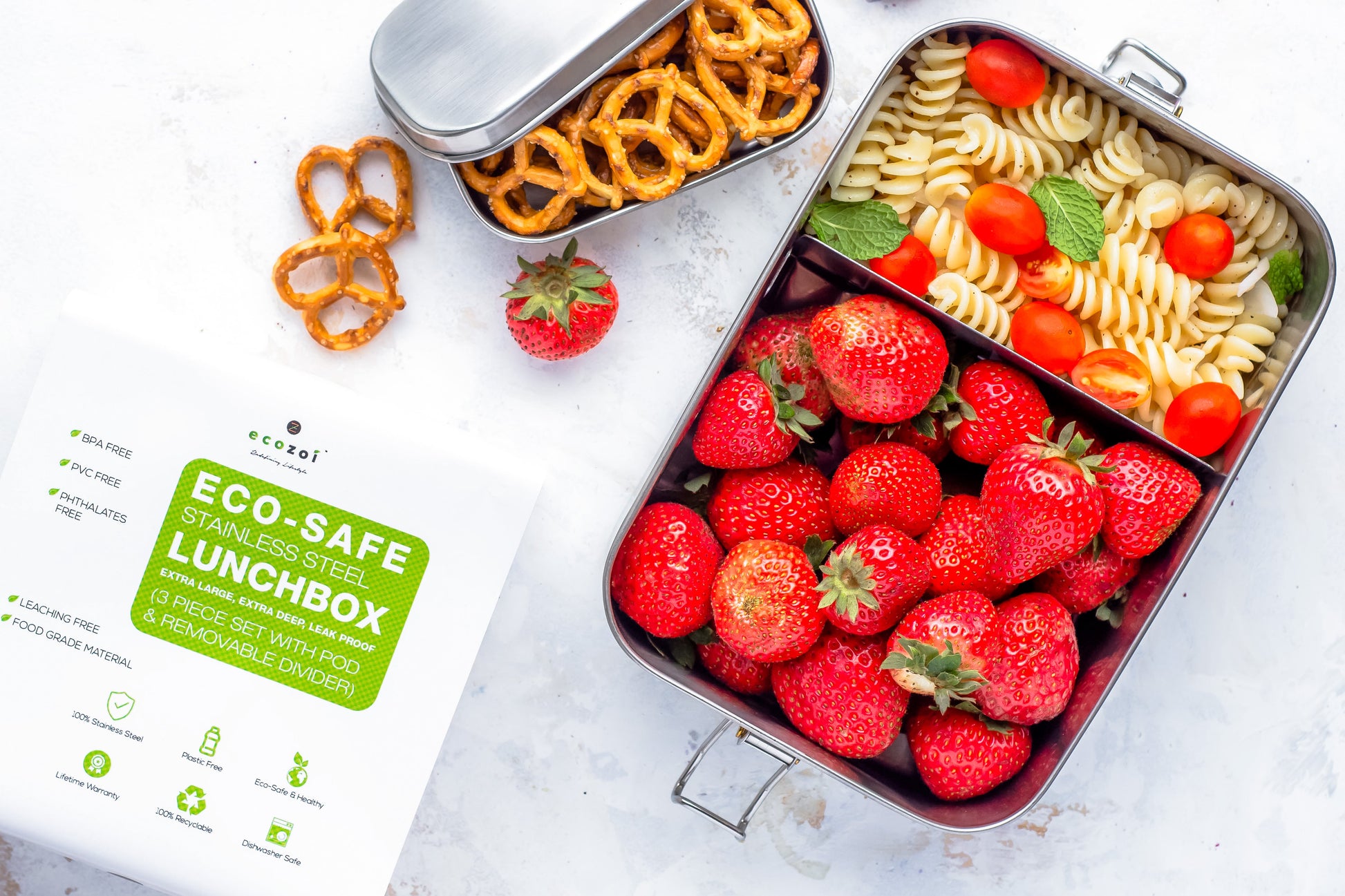 Eco-conscious shoppers prefer Ecozoi because we combine sustainability with practical innovation. The upgraded silicone seal ensures zero leaks, while the minimalist stainless steel body keeps food safe and fresh—all without plastic waste.