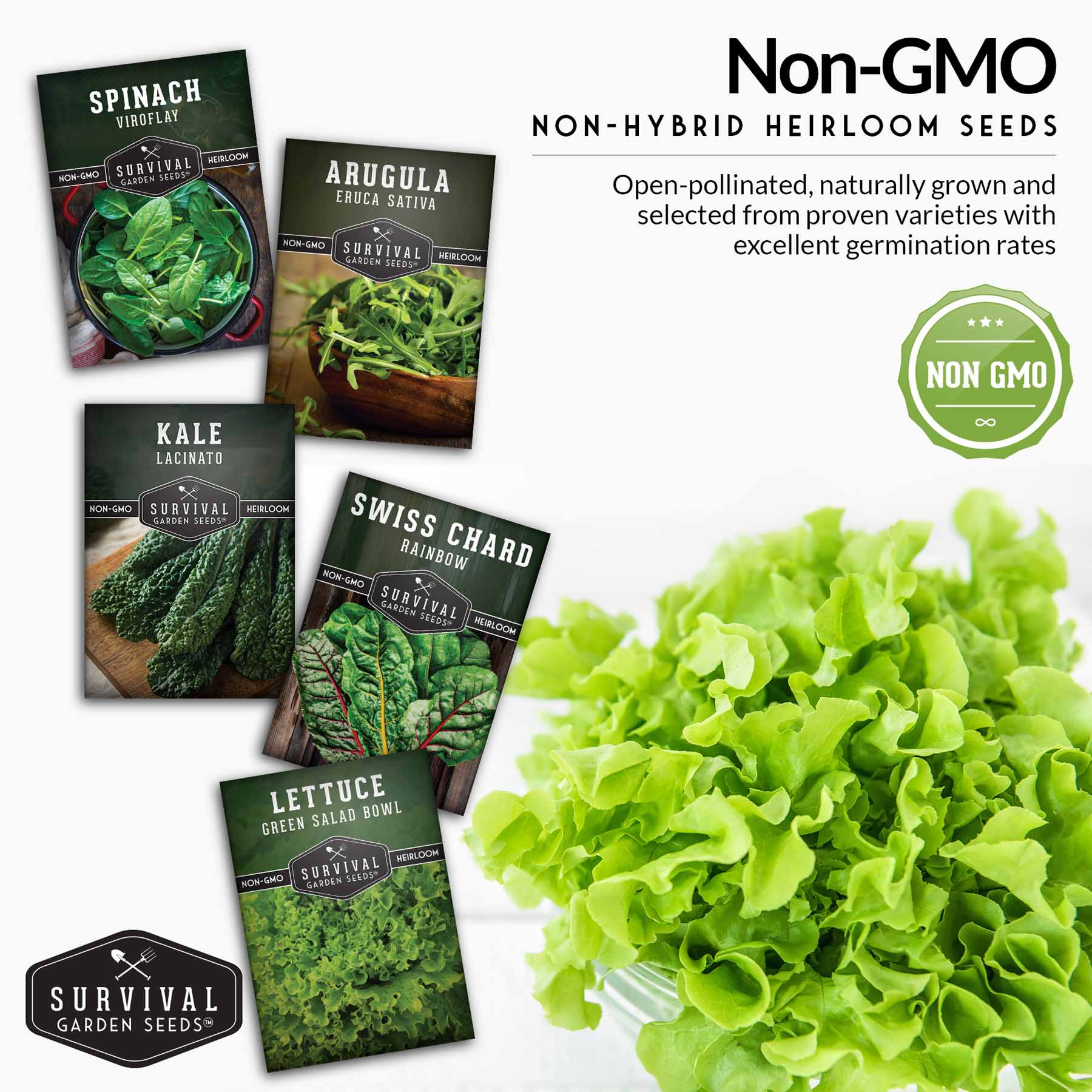 Greens Seeds Collection – 5 Heirloom Leafy Superfoods for Year-Round Growing Indoors or Outdoors