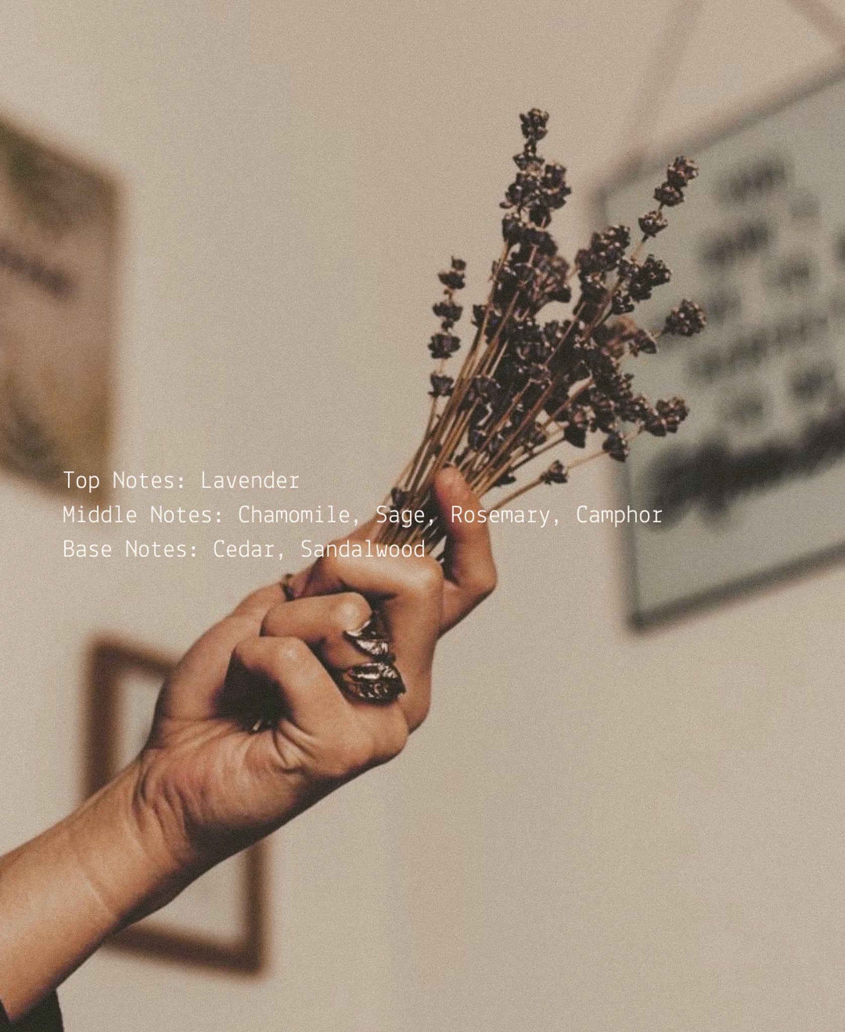 Yogi is presence, distilled. Crafted to quiet the mind and root the body, it opens with cool lavender—expansive, calming, clean. At the heart: chamomile, sage, rosemary, and camphor—an herbal exhale, clearing what lingers. The base grounds you in sandalwood and cedar—warm, steady, quietly ancient.